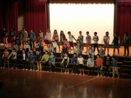 3時間目は、講堂に場所を移し、リハーサルを行いました。時間と他学年との兼ね合いから、与えられたチャンスはたったの1回。子ども達は本番同様の気持ちで臨みました。笛の合奏やダンスでは、少しずれが見られました。その原因の一つは、子ども達がはりきりすぎていたことがあげられます。そこで、6時間目に再びランチルームに集合し、最終調整をしました。