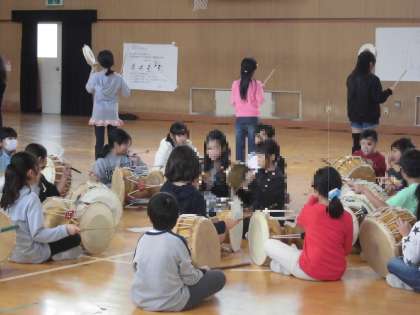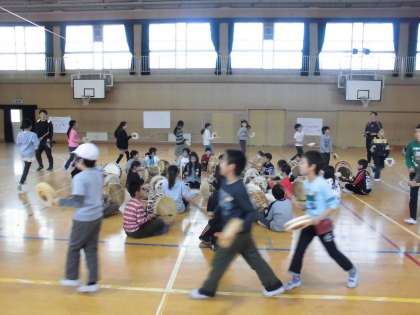 4年生は「サムルノリ」という、韓国朝鮮の楽器を使った演奏を披露します。5つの種類の楽器をそれぞれに担当を決めて練習をしています。