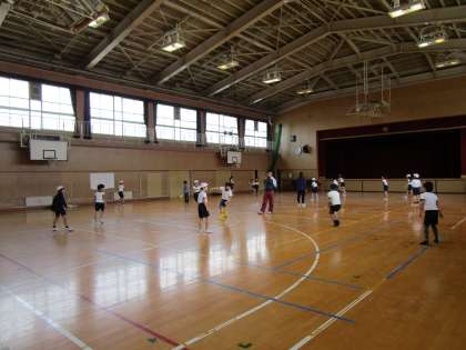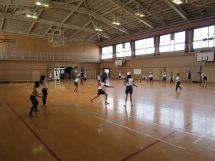 最初は男子・女子でそれぞれ2チームに分かれて試合をしました。