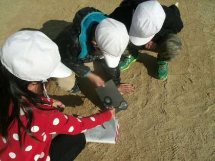 先日は、鏡に反射させた太陽の光を集めた時の明るさと温度について学習しましたが、今回は太陽の光をレンズで集めた時の様子を観察しました。