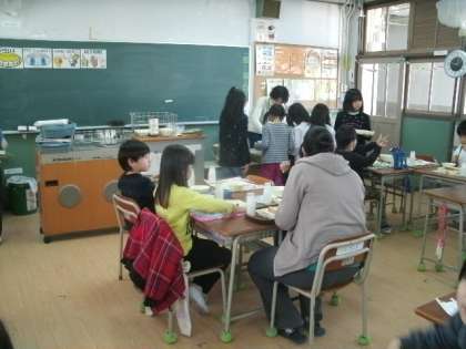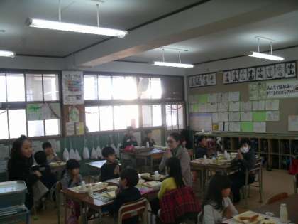 給食の時間、1組さんの教室を覗くと、スペシャルゲストが来ていました。エイドリアン先生です。エイドリアン先生は、毎週金曜日に5・6年生の外国語の授業を担当されていて、3年生がいっしょに過ごせる機会はほとんどありません。ですから、エイドリアン先生と一緒に給食を食べるのをとても楽しみにしていたようで、いただきますをする前やおかわりをするために並んでいる少しの時間でも、積極的にエイドリアン先生に話しかけていました。エイドリアン先生もそれに応えて笑顔で優しく子ども達と会話を楽しんでいました。その様子を見て、今年から始まった英語のモジュール学習の成果かな〜とうれしくなりました。