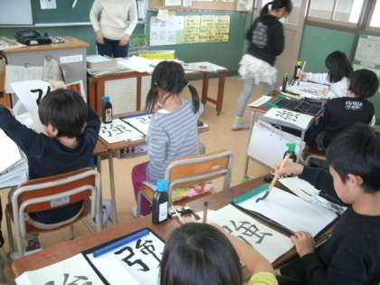 5時間目はいつも使っている半紙を使って一文字ずつ練習しました。2学期最後の書写の時間から少し間があいているので、文字のバランスがうまくいかないところもありましたが、どんどん書き込むことによって少しずつバランスがとれるようになっていきました。