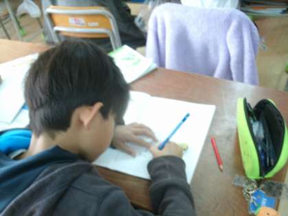 1時間目は、分数と小数の関係について学習しました。学習のめあてを確認する時、子ども達一人一人が積極的に手を挙げて発表しようとしていました。そして、数直線を使って、分数と小数の関係を理解していきました。