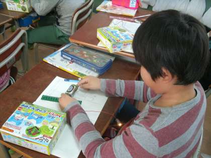 自分の考えた方法を、実際に体験することを通して確認し、学習のねらいに迫っていました。