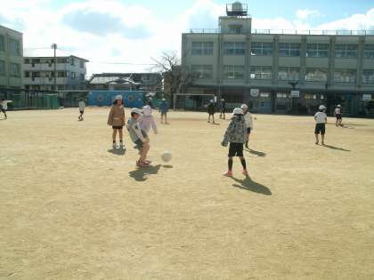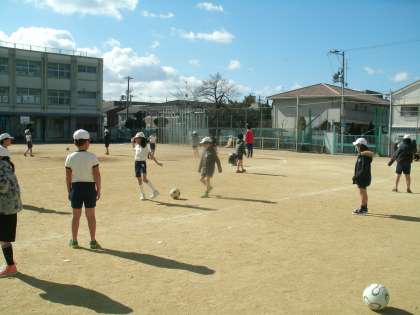 連日とても冷え込んでいます。少々体を動かしたぐらいでは、なかなか体が温まりません。その中で、今日の3時間目は運動場で体育をしました。学習内容は、ゴール型ゲームのサッカーです。