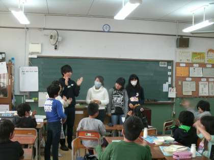 給食では各グループに6年生が入り、会話を楽しみながら食べました。最後に、「卒業おめでとう」を手話で伝え、ほのぼのとした雰囲気の中で『卒業交流給食』を終えました。