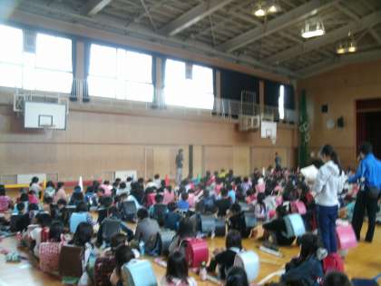 台風などにより緊急に下校しなくてはいけない時、本校では子供たちの安全を確保するために、同じ地区の子ども達が集まって集団で下校します。その時、自分はどのグループで帰るのか、同じグループの人は誰なのか、通学路に危険なところはないかなどを確認するために、本日、一斉下校を行いました。