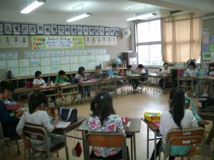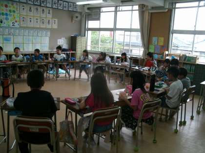 あいにく天気が悪く、錦織公園への遠足は延期になりました。ということで、通常の学習を行いました。ドバーッと大粒の雨が降ったなら子供たちもあきらめがつきますが、雨はパラパラ程度。なかなかモチベーションが上がらない子供たち。しかし、お弁当の時間になると、笑顔があふれ、会話を弾ませながら、お弁当に舌鼓を打っていました。