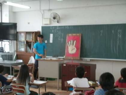 商をたてたり、割られる数をおろしたりする時に位を間違えないように意識付けするために、また、商をたてる時のヒントにするために、朝鮮子ども会発表会のゲームタイムの時に使っている巨大じゃんけんボードを活用しました。
