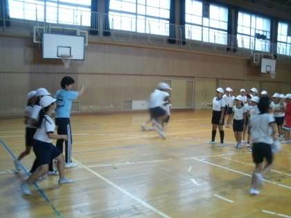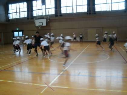 雨の影響で外遊びもできません。子供たちは体を動かしたくてムズムズ。その中でした体育。子供たちは元気いっぱい体を動かし、運動に取り組みました。