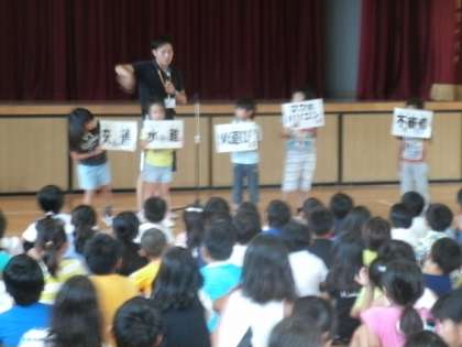 その後生活指導の先生から、1;交通事故に巻き込まれない2;水の事故に合わない3;火遊びはしない(花火をする時は大人の人と)4;スマホ・パソコンは約束を守って正しく使う5;不審者に気を付けるという、特に気を付けてほしい5つのことについて話がありました。