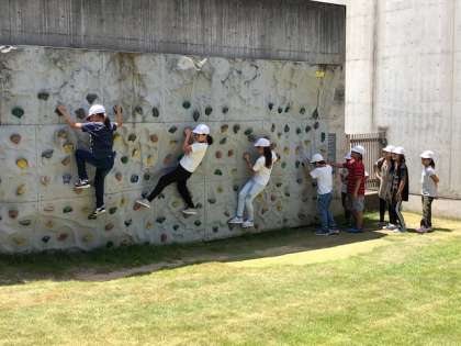 植村直己さんのビデオを観た後、活動班で館内の見学をして、班でクイズの答えを探しました。ロッククライミング体験もがんばりました。