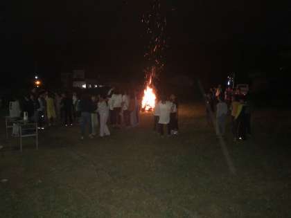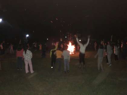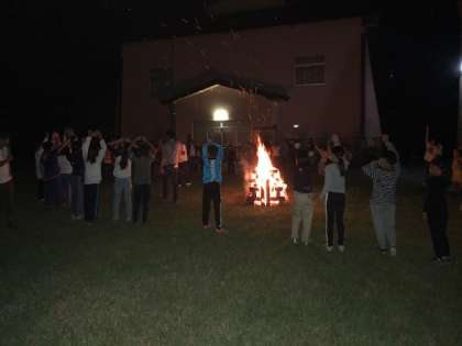 先ほどキャンプファイヤーを終えて宿舎に戻ってきました。みんなで協力し合って盛り上がった、楽しい雰囲気いっぱいのキャンプファイヤーでした。今から就寝の準備です。