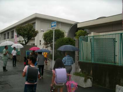 さて今日は、地域の方々のご協力を得て『避難登校』を実施しました。小雨の降る中、地域やお家の方と一緒に登校してきた子供たち。災害が起こった時に避難場所になっている学校までどのように避難すればよいのか、訓練を通して理解していきました。