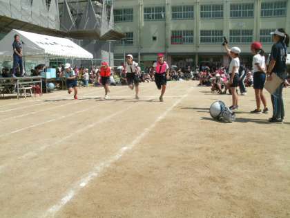 プログラム12は、6年生によるリレー「fellowship38〜つなごう絆のバトン!〜」でした。さすが6年生。抜きつ抜かれつ、どのチームが1位でゴールするか、手に汗握る迫力あるレースが展開されました。