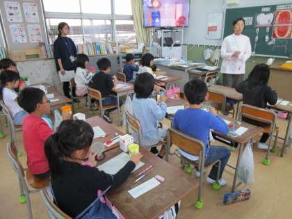 まずお口の中の勉強を、歯科衛生士の先生に来てもらい学びました。例えば、奥歯がなぜデコボコな形になっているのかなどを勉強しました。ぜひご家庭で聞いてみてください!
