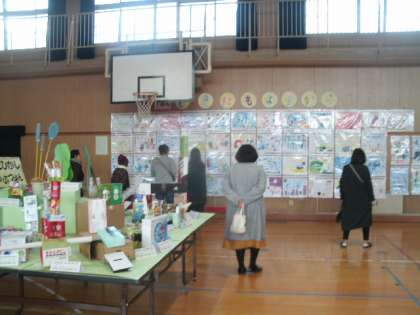 作品展会場の中には、この日のために子供たちががんばって制作した個性あふれる作品がずらり展示されています。それを来場された方は、興味深く、また、感心されながらご覧になっていました。