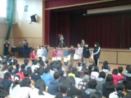 今日は週のはじめの月曜日。全校朝会のある日です。いつもとは違い、雨のため体育館で行いました。その中で、とてもうれしい知らせがありました。夏休みの課題の一つに『MOA児童作品展』の作品作成(絵画の部・書写の部)があり、本校の子供たちがたくさん表彰されました。産経新聞社賞や金賞、銀賞、銅賞と、子供たちのがんばりが、目に見える形で評価されたことに、全校生で喜びを分かち合いました。校長先生から一人一人に賞状が手渡されると、全校生から大きな拍手が起こりました。