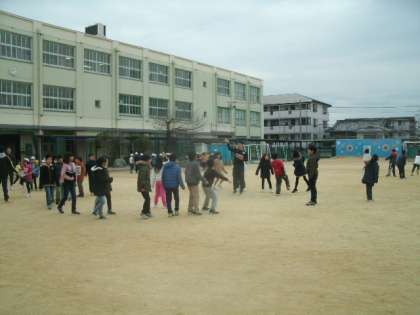 『子どもは風の子』とは言っても、寒くなると、どうしても部屋の中にいることが多くなります。そこで、冬場の運動不足を補い、健康の保持増進を目指して、今日から『なわとびギネス』が始まりました。この『なわとびギネス』は、長縄の八の字跳びを5分間続け、何回跳べたかをクラス対抗で競い合うものです。