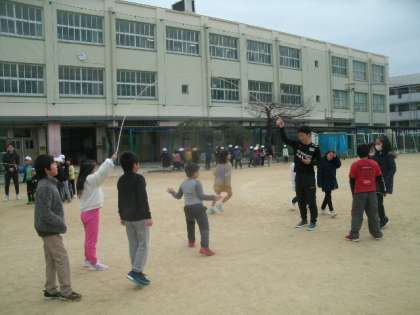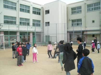 休み時間を見ていると、早速クラスみんなで声を掛け合い、力を合わせて1回でも多く跳ぶことができるようにがんばって取り組んでいました。