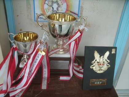 まずは、東住吉区小学生朝食コンテストで6年生児童がアイデア賞を受賞したと、校長先生からお話がありました。そのあと、矢田東小学校のサッカーチーム:矢田東ボルテスFCが大会で活躍して賞を獲得したこと、先週の日曜日に行われた矢田子どもスポーツ交流会で、高学年チームが優勝と準優勝、低学年チームが優勝したことが紹介され、トロフィーやカップ、盾が、それぞれチームの代表者に校長先生から授与されました。