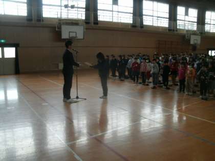 今日は、今年度最後の登校日で、修了式を行いました。6年生が2日前に卒業したので少し寂しい式になりましたが、1〜5年生の成長を感じる式となりました。