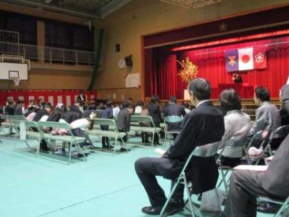 緊張感漂う中、1年生はとても姿勢よく座り、大きな声で返事をしたり、