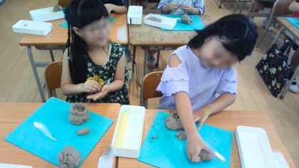 粘土を使って、好きな形やものを作りました。