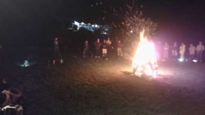 1日目の夜にキャンプファイヤーをしました。係が中心になってレクリエーションを進めました。