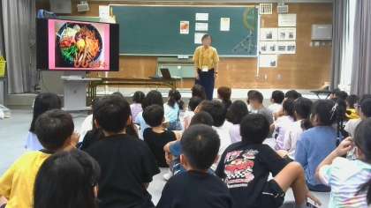韓国・朝鮮のあいさつや食べ物など、さらに国際クラブ(朝鮮子ども会)の紹介も聞きました。