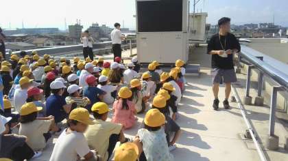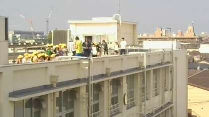 運動場に避難後、津波を想定して屋上への避難の訓練をしました。安全に配慮して、訓練を行うことができました。最後に、教室へ戻り校長先生の話を聞きました。