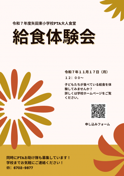 令和7年度 矢田東小学校PTA給食体験会開催のご案内