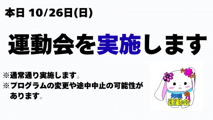 本日10月26日(日)の運動会は実施します。