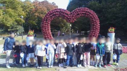 2年生は秋の自然観察も行い、イチョウの葉や柿の木、まつぼっくりなどを見つけました。