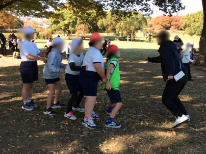 どのグループも、広い野原で、話し合って決めた遊びを楽しみながら活動しました。