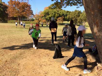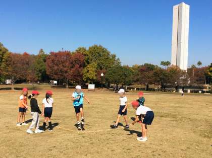 今回の遠足では、3・4年生がグループを作り、グループごとに遊ぶ時間を設けました。