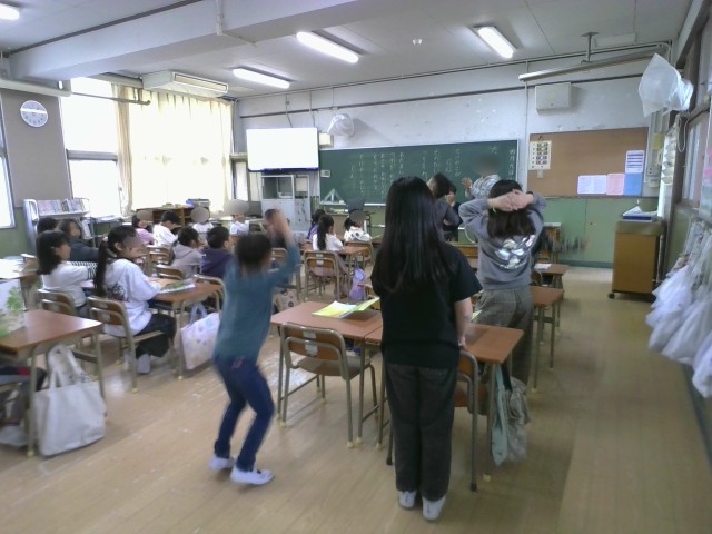 国語の「たけのこぐん」の詩を、体を動かしながら表現していました。