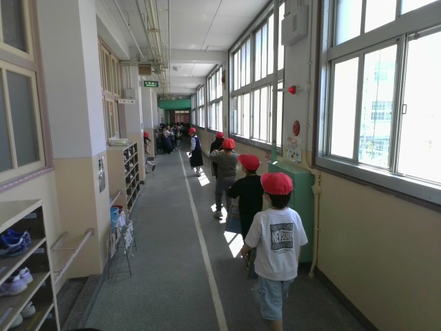 何やら廊下に列が。みんな探検バックを持っていますね。
