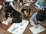 今日の図工も、作品展に向けた作品『白い自転車に乗った夢』の作成に取り組みました...