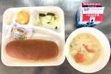 今日の献立は ・コッペパン ・ぎゅうにゅう ・アプリコットジャム ・コーンクリ...