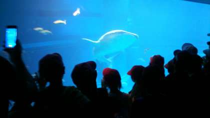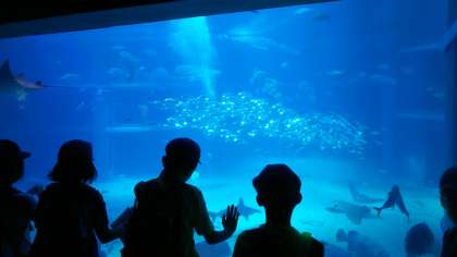 たくさんの海の生き物を見て、子どもたちは大興奮で楽しんでいます。