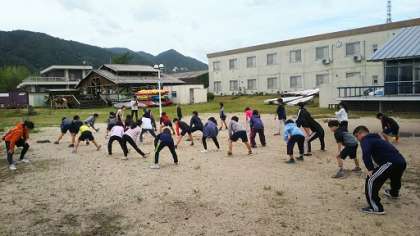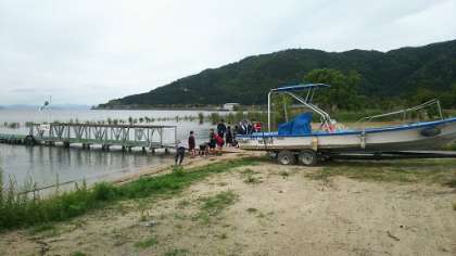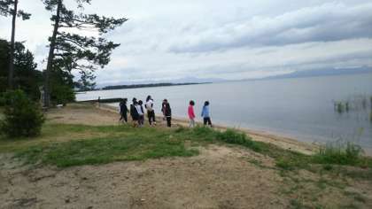朝から元気いっぱい体操をして、湖のほとりを散策しました。