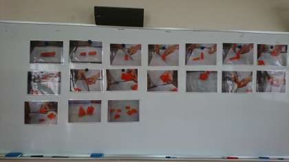 また給食調理員さんは、給食に入っているにんじんの飾り切りの仕方の写真を用意して下さいました。