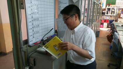 これから月に一度、朝の時間を使って、放送で先生による「読み聞かせリレー」を行っていきます。子どもたちが少しでも本に興味をもってくれたらという思いで始めた取組です。読み聞かせリレーのトップバッターは、校長先生でした。