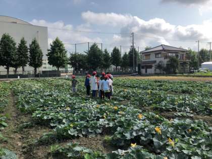 毎年4年生の時に、田辺大根でお世話になっている藤本さんから、5年生の理科で植物の受粉を学習した子どもたちに、実際にかぼちゃの雄花を雌花に受粉させる体験をさせていただきました。かぼちゃは、朝早くにしか咲かないため、子どもたちは、雌花を一生懸命探して受粉させていました。かぼちゃの雄花と雌花の違いも分かり、子どもたちは喜んでいました。帰りに、自分たちが田植え体験させていただいた、田んぼの横を通って帰ってきました。自分が植えた場所を見ながら大きく育っている稲を見て喜んでいました。貴重な体験をさせていただきありがとうございました。