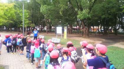 2年生がグループに分かれて大泉緑地まで向かう「小さな旅」が行われました。道中で、バリアフリーになっているところや案内板などの「まちのやさしさ」に注目し、タブレットで撮影しながら行きました。グループで協力しながら、全員無事にゴールすることができました。