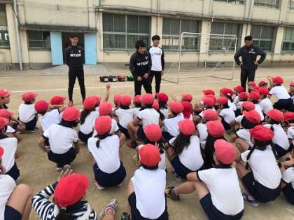 トップアスリート夢授業でセレッソ大阪の方たちに来ていただきました。プロの技術を見せていただき、子どもたちは憧れのまなざしで見ていました。また、子どもたちにも優しく声をかけていただき、みんな楽しそうにサッカーを楽しんでいました。