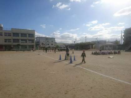 東住吉警察署交通課・ラビット隊の方に来ていただきました。1・2年生は道路の歩き方の学習をしました。最初に、交通ルールや歩き方について、教えていただきました。次に実際に動きながら学習しました。右左右を見て、信号を守って、安全に歩く方法を確かめながら活動しました。みんな真剣な表情で取り組んでいました。