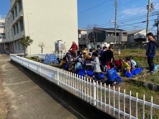生活科の学習でチューリップを植えました。手を土だらけにしてみんな熱心に作業しました。最後にタブレットで成長の記録を残しました。