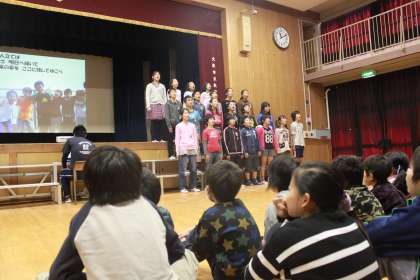 「最期のラブレター」では、「愛」「戦争」という2つに焦点を当てながら、時代に翻弄された男女2人の生きた道をたどりました。戦争の悲惨さと同時に、人を愛することの温かさを感じる発表でした。最後に歌った「HEIWAの鐘」は発表を聞いていた人の胸にしっかりと響きました。